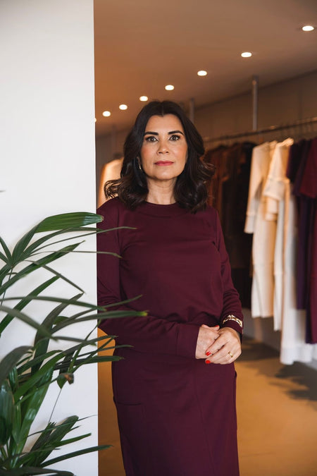 Design sofisticado: A blusa com mangas longas e gola discreta equilibra elegância e conforto, enquanto a saia longa valoriza a silhueta de forma sutil.