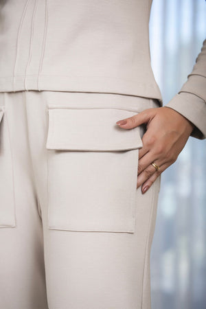 ● Calça reta com bolsos utilitários: Design prático e moderno, com bolsos funcionais que adicionam um toque descontraído sem perder a sofisticação.