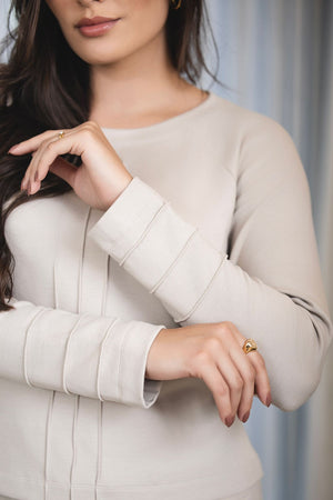 ● Blusa de mangas longas com nervura: Detalhe em nervura frontal, que traz um charme extra e refina o visual.