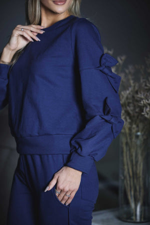 O conjunto Laços é composto por calça reta com elástico na cintura, com bolsos laterais e na parte traseira da calça também e barra com assimetria. Blusa com mangas longas, punhos largos em malha de ribana, mangas com amarrações no próprio moletom e gola alta. Uma proposta rica em detalhes. Um modelo lindo de conjunto que facilita nosso momento de vestir. É a escolha perfeita para mulheres que buscam unir sofisticação e conforto em um só look. Ideal para viajar com uma roupa que não incomoda e te deixa pronta. Com um design elegante e atemporal, esse conjunto combina a praticidade de uma produção linda e versátil para diversas ocasiões. Confeccionado com malha premium e sustentável de alta qualidade, o moletom oferece beleza, corte em alfaiataria e caimento perfeito, sem abrir mão da feminilidade.