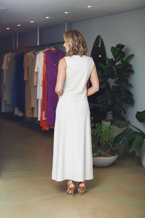 O Conjunto Luminous é a escolha perfeita para mulheres que buscam unir sofisticação e conforto em um só look. Com um design elegante e atemporal, esse conjunto combina a praticidade do colete em modelo de alfaiataria com botões frontais e com o charme da saia longa, criando uma composição refinada e versátil para diversas ocasiões. Confeccionado com malha premium sustentável de alta qualidade, oferece leveza e caimento perfeito, sem abrir mão da elegância.