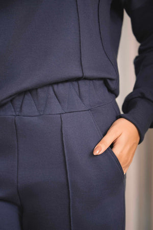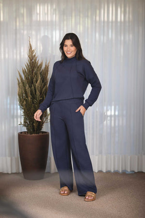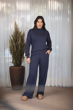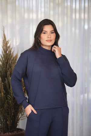 O conjunto Nervuras é composto por calça reta com elástico na cintura, com bolsos laterais e na parte traseira da calça também. Blusa com mangas longas, punhos largos em malha de ribana, recortes na frente e gola alta. Uma proposta rica em detalhes. Um modelo lindo de conjunto que facilita nosso momento de vestir. É a escolha perfeita para mulheres que buscam unir sofisticação e conforto em um só look. Ideal para viajar com uma roupa que não incomoda e te deixa pronta. Com um design elegante e atemporal, esse conjunto combina a praticidade de uma produção linda e versátil para diversas ocasiões. Confeccionado com malha premium e sustentável de alta qualidade, o moletom oferece beleza, corte em alfaiataria e caimento perfeito, sem abrir mão da feminilidade.