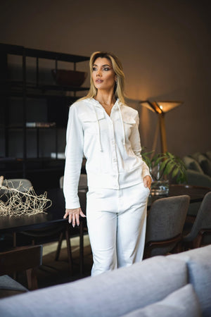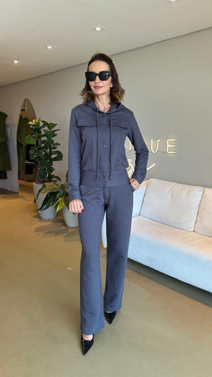O conjunto Nova York é composto por calça reta alfaiataria com zíper e botão no cós, com bolsos laterais e na parte traseira da calça também. Jaqueta com mangas longas, punhos com botões, bolsos e capuz em uma proposta rica em detalhes. Um modelo lindo de conjunto que facilita nosso momento de vestir. É a escolha perfeita para mulheres que buscam unir sofisticação e conforto em um só look. Ideal para viajar com uma roupa que não incomoda. Com um design elegante e atemporal, esse conjunto combina a praticidade de uma produção linda e versátil para diversas ocasiões. Confeccionado com malha premium e sustentável de alta qualidade, o moletom oferece beleza, corte em alfaiataria e caimento perfeito, sem abrir mão da feminilidade.