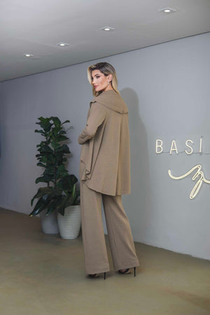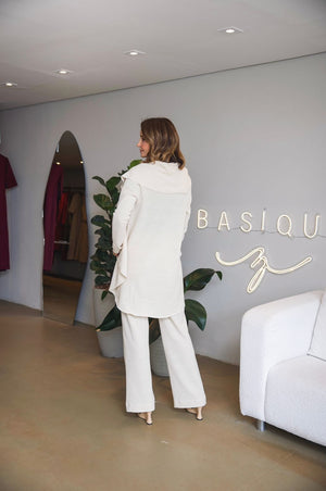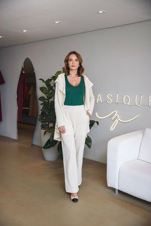 O conjunto Riviera é composto por calça reta com bolsos laterais e na parte traseira da calça também. Cardigã com mangas longas e assimetria na parte de trás da peça, com decote lindo e moderno. Um modelo lindo de conjunto rico em detalhes que facilita nosso momento de vestir. É a escolha perfeita para mulheres que buscam unir sofisticação e conforto em um só look. Com um design elegante e atemporal, esse conjunto combina a praticidade de uma produção linda e versátil para diversas ocasiões. Confeccionado com malha premium e sustentável de alta qualidade, tem a textura de tricot e oferece beleza, corte em alfaiataria e caimento perfeito, sem abrir mão da feminilidade.